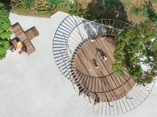 受賞コメント築50年を越えた団地の再生計画。歴史を重ねたことで老朽化し、現代の生活環境に適さない要素を丁寧に抽出し撤去。本団地の特徴である豊かな共用部に一面芝を敷き詰め明るく風通しの良い広場を出現させた。住棟のバルコニーにはランダムな木調のルーバーを配置し広場との調和を図った。自ら手がけた「団地の未来プロジェクト」のロゴからデザインした屋外家具を各所に設置し本計画をよりアイコニックな存在として位置付けた。