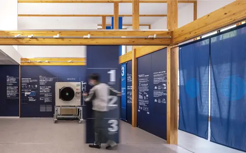 暮らしを支える多くの製品を展示するにあたり、日本の知恵を取り入れ、会社の思想を表現するサステナブルな展示空間を目指しました。