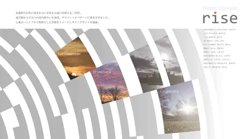 地平線から中天への天体の移ろいを人の心の動きと重ね、デザイコンセプトを『 ライズ/ RISE 』と致しました。