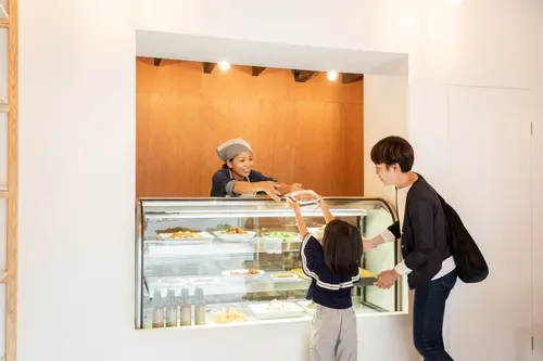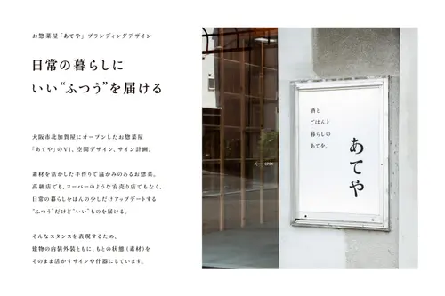 受賞コメント素材を活かした手作りで温かみのあるお惣菜。高級店でも、スーパーのような安売り店でもなく、日常の暮らしをほんの少しだけアップデートする“ふつう”だけど“いい”ものを届ける。そんなスタンスを表現するため、建物の内装外装ともに、もとの状態(素材)をそのまま活かすサインや什器にしています。