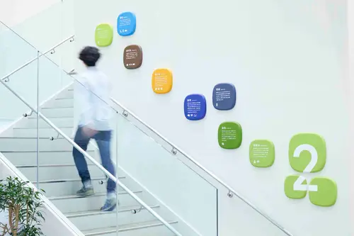 サインやファニチャーへ展開することで、色彩を楽しみながら、