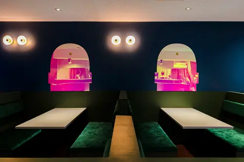 受賞コメント過去に歴史ある喫茶店があった場所に作られた喫茶店。北海道最大の繁華街ススキノであるが故に生まれたコンセプトを表現。懐かしいけど新しいデザインの共存を生みだし、風俗街近くという立地条件に対し、若い層への興味を引き、新たな流れで地域を明るくすることを目指した。ロゴのダリアの花言葉は「優雅」「気品」「裏切り」「不安定」など。花言葉の印象をデザインに昇華させてお店のコンセプトを空間全体で表現。
