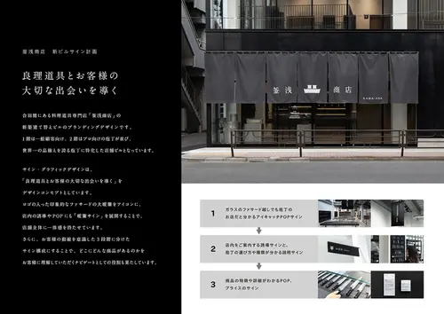 合羽橋にある料理道具専門店「釜浅商店」の新築建て替えビルのブランディングデザインです。