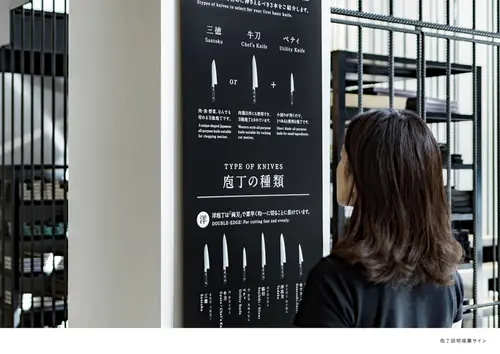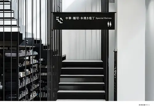 1階は一般顧客向け、2階はプロ向けの庖丁が並び、世界一の品揃えを誇る庖丁に特化した店舗ビルとなっています。