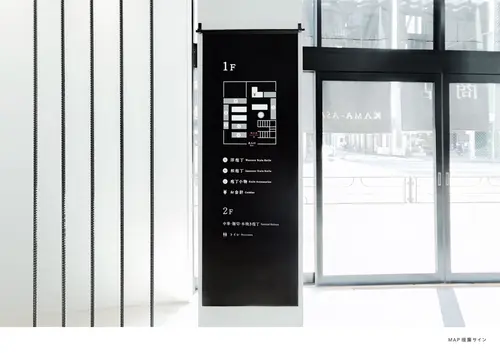 さらに、お客様の動線を意識した3段階に分けたサイン構成にすることで、どこにどんな商品があるのかをお客様に理解していただくナビゲートとしての役割も果たしています。