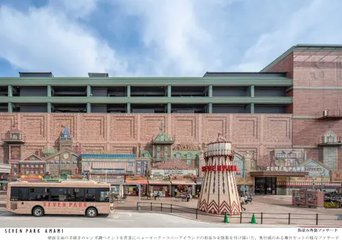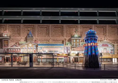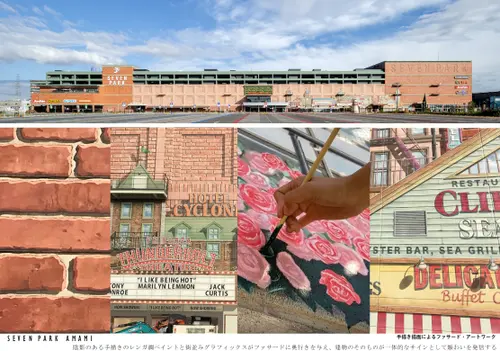 受賞コメント「セブンパーク天美」は施設の内外で様々なイベントが行える場所を備え、ショッピング以外の体験を可能とするエンターテインメント機能を基軸とした商業施設である。外壁面全面に手描きの煉瓦調ペイントの街並みを写し込み、建物全体が舞台セットの様に感じられ、様々なアクティビティが連続した外部空間の中で行われる。内部の大型ビジョンと大階段を合わせ持つ3層の吹抜は、視線の交錯を誘発する立体的なイベント空間である。