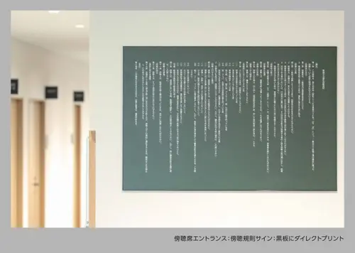 美術館のキャプションを見るような表示でシンプルかつ機能的なサインデザインです。