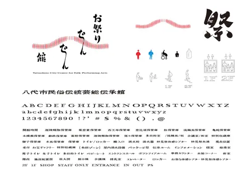 作品名八代市民俗伝統芸能伝承館(お祭りでんでん館)サイン計画