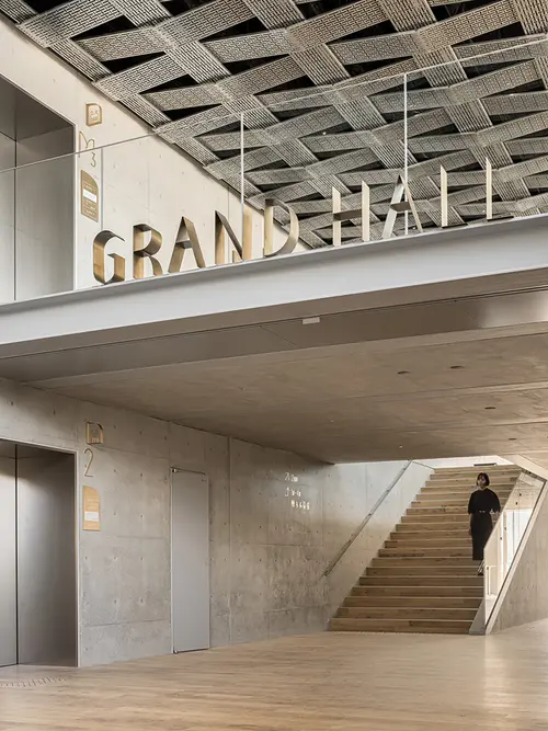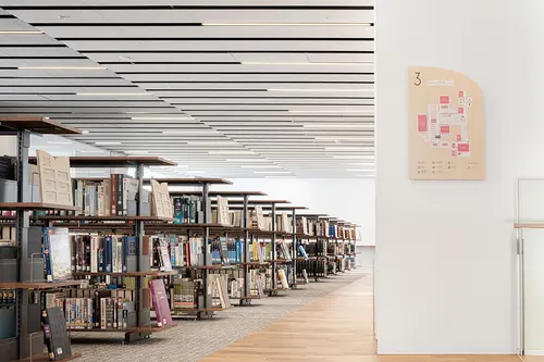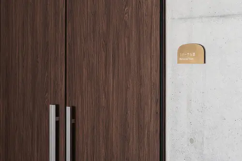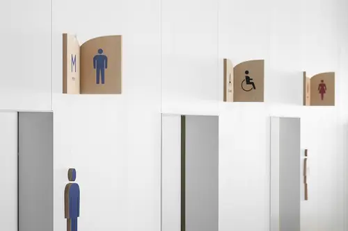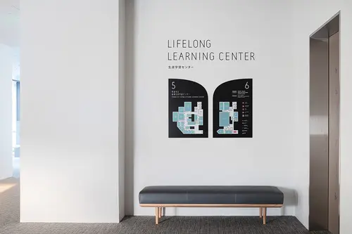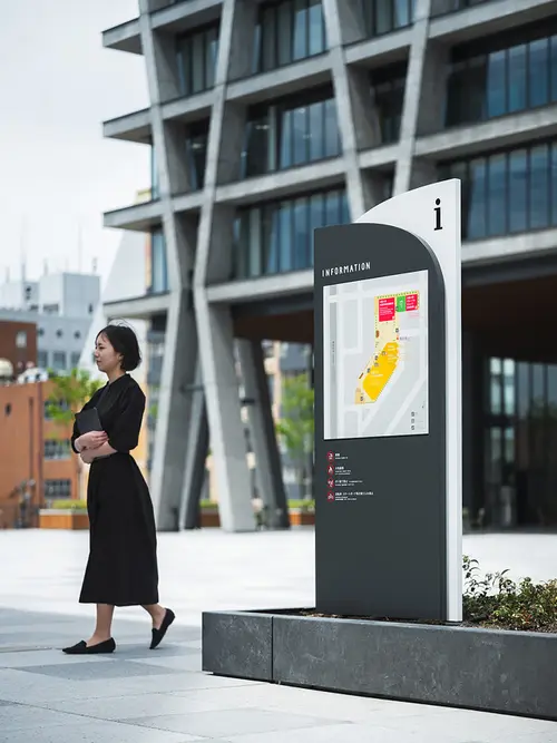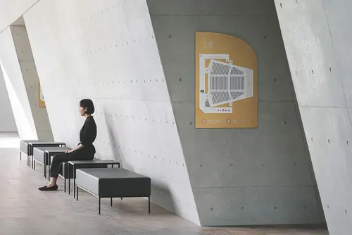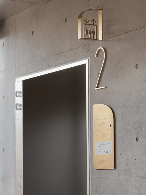 受賞コメント大阪箕面市にオープンした文化劇場と、隣接する図書館兼学習センター。図書館の学びをホールで発表する、ホールの活動が図書館のアーカイブとなる。連動する2つの施設のサインは、箕面の滝をモチーフにした形状をそれぞれに展開している。特産である柚子の木が成長すると黄金の実がなるように、日常的に通う図書館の木のサインに対して、ハレの場である劇場では光沢ある金属素材を使用した。
