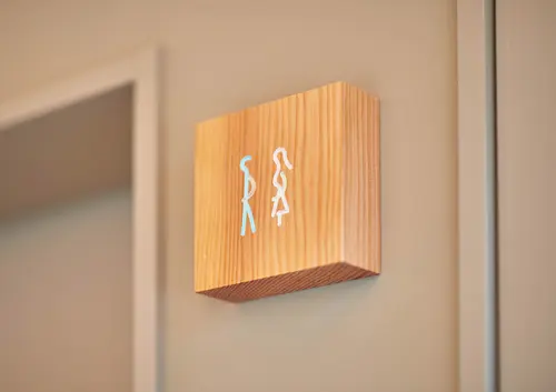 受賞コメント終末期医療施設のサイン計画。Alberobelloはイタリアの集落が由来となっており、シンボルマークにおける頭文字Aの連なりから建築の大きな屋根の連なりを思い起こさせることを意図しています。室内のサインは建築空間に馴染むよう、木に掘り込み着彩をしました。空間を表記する文字のサインは、木造の建築躯体に直接文字を掘りこむことで、建築との一体感を感じさせるサインを計画しました。(191字)