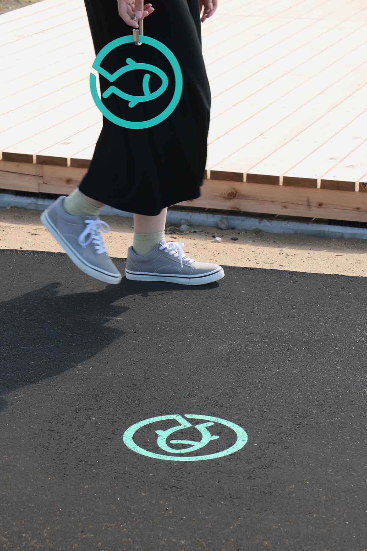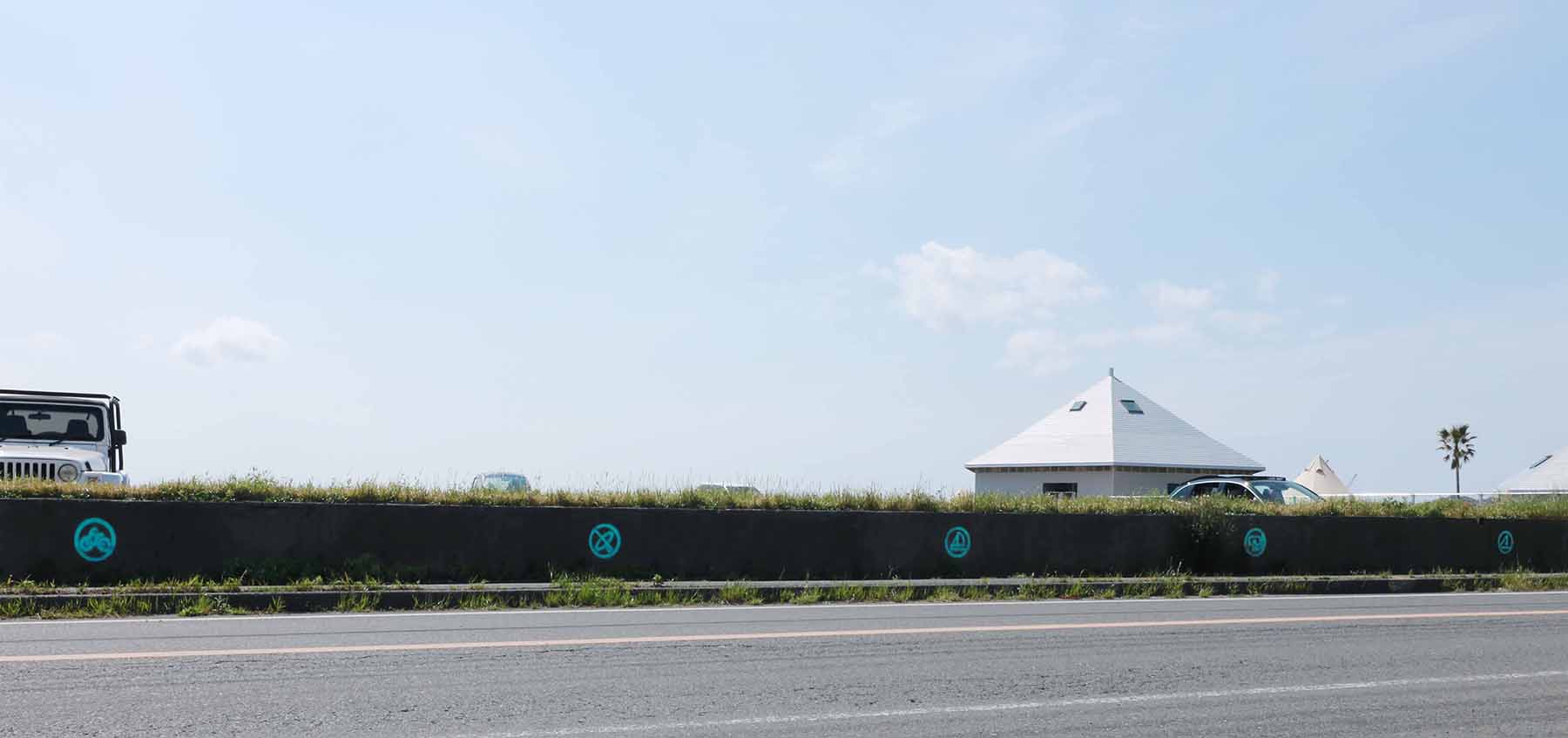サイン計画では、各エリアをキャンプや海に関連するアイコンで整理した。