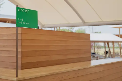 都市公園にあるBBQ場にという人々が集う場所に相応しいサインとして、フラッグをモチーフにしたサインを計画し展開した。