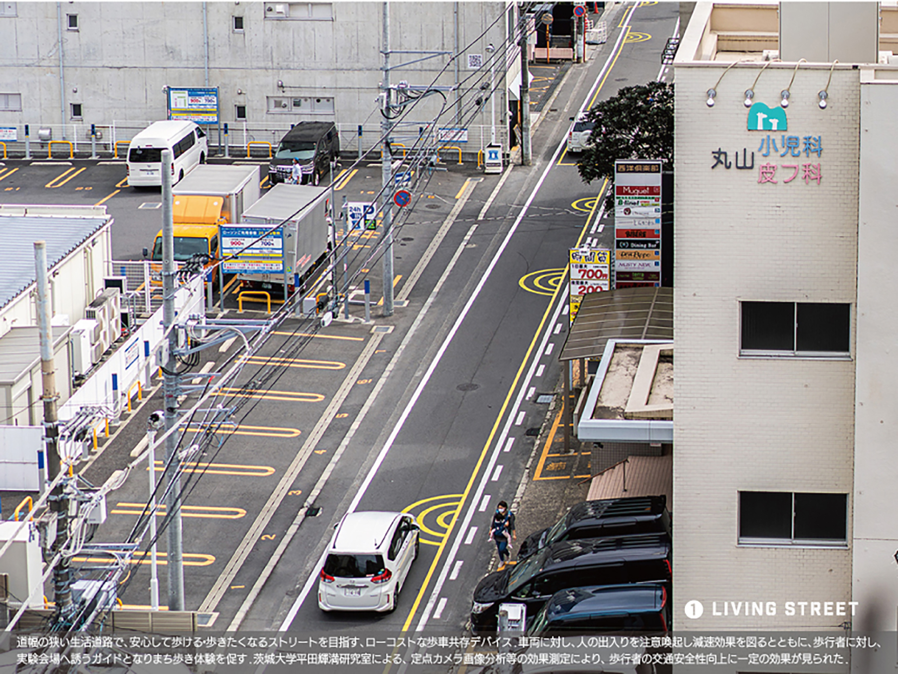受賞コメント空洞化が深刻な水戸まちなかにおける、車から人中心のまちづくりに向けた空間活用実験の会場サイン計画。空地や屋上、道路など、何気ない都市空間に着目し、人のための居場所作りを低予算で試みた。屋内外の立地特性と規模の異なる6つの滞在空間をつなぐ、4つの動線空間に路面・壁サインやフラッグサインを設置し、人と車両の快適な共存を図った。既存のポテンシャルを最小限の操作で最大化するデザインを目指した。