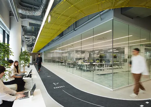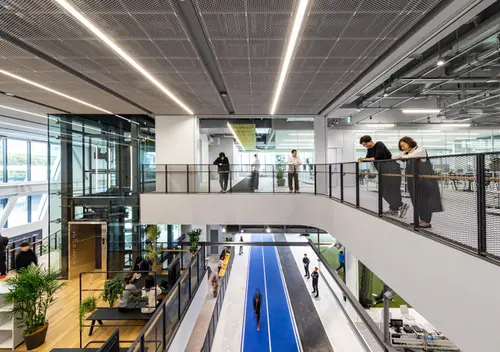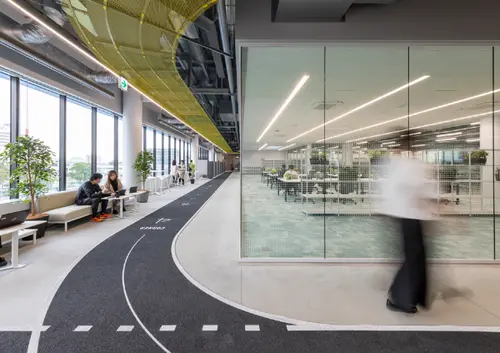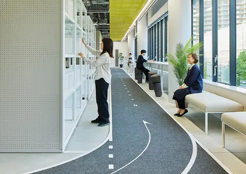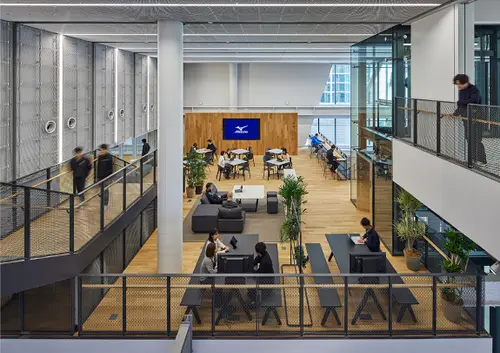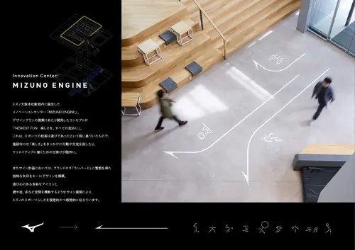 受賞コメントスポーツの起源は遊びであった、という説にヒントを得て“NEWEST FUN 楽しさを、すべての起点に”を空間のデザインコンセプトに設定。自然に行動や交流を誘発したり、クリエイティブに働けるような空間をめざしながら、デザイン構築の作業においても“遊び心”や“楽しい”という感覚を尊重しました。[br]ミズノのブランドマークである「ランバード」から着想した独特な形状の矢印は、遊び心や先進性を感じさせつつ、空間全体のなかでミズノらしさを感覚的に伝えるアイデンティティーとし、施設内を自由に疾走するようにデザインしています。