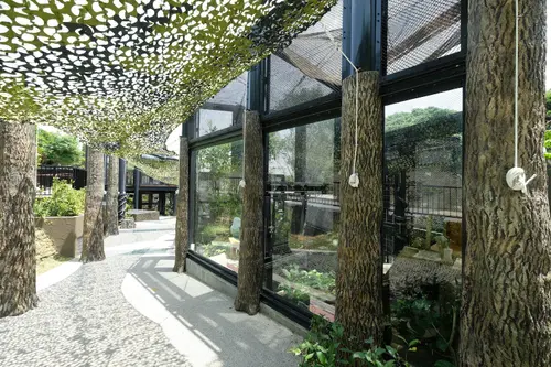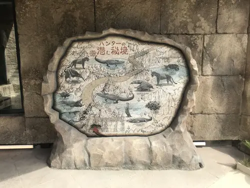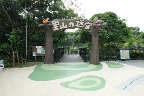 沖縄こどもの国 「里山の迷宮」「ハンターの潜む秘境」サイン