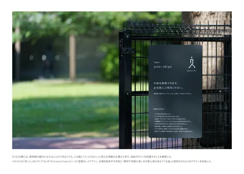 受賞コメント千葉県立美術館の活性化事業に伴う、屋外サインの計画及び、そこで使用する館名の書体デザインを担当した。この美術館はメタボリズムグループの一員でもある建築家・大高正人の設計で、1974年に開館している。メタボリズムとは新陳代謝を意味する言葉。今回の取り組みもまた、美術館の新陳代謝ではないかと捉え、過去から未来へとその存在を繋げ、外部と内部の交わりをより活発にしていくことを意識しデザインした。