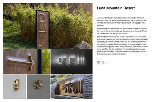 The prize we won is the signage design for Luna Mountain Resort. Luna Mountain Resort is a hot spring resort located in the hills of southern China.