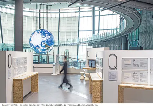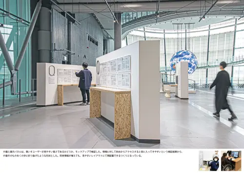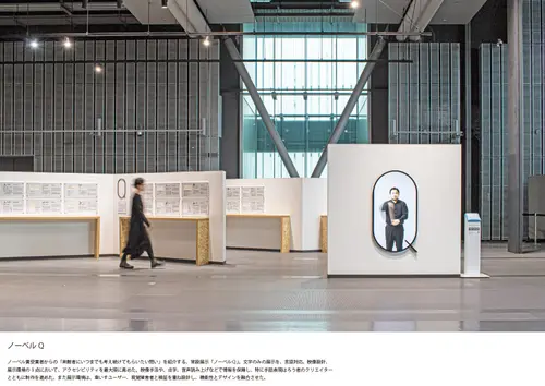作品意図ノーベル賞受賞者からの「来館者にいつまでも考え続けてもらいたい問い」を紹介する、常設展示「ノーベルQ」。文字のみの展示を、言語対応、映像設計、展示環境の3点において、アクセシビリティを最大限に高めた。映像手法や、点字、音声読み上げなどで情報を保障し、特に手話表現はろう者のクリエイターとともに制作を進めた。また展示環境は、車いすユーザー、視覚障害者と検証を重ね設計し、機能性とデザインを融合させた。