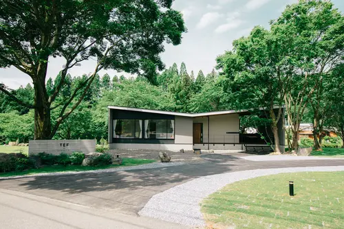 作品意図岐阜蝶(ギフチョウ)に由来する名を持つヴィラ「TEF TANIGUMI」。蝶をモチーフにしたロゴは、シンプルでありながら存在感があり、若年層からファミリー層まで受け入れられるようなデザイン。サインに於いては、エイジングをベースとし周辺の景観に溶け込みながらも、視認性を確保できるよう配慮。鉄に模したエイジング塗装を採用することでコストも抑えつつ、長く状態が保たれるようにした。