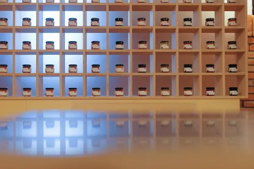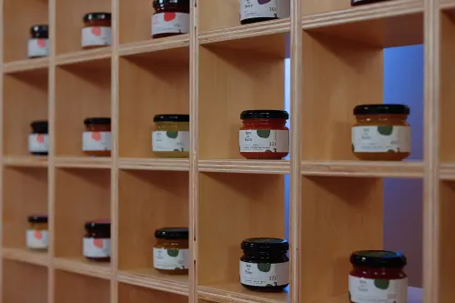 作品意図国産素材に拘るジャム専門店 “Jam the(ジャム・ザ)”。常時多種多様なジャムがあり、季節ごとに異なるフレーバーを楽しむことができる。100種類以上ある商品をアートのように展示することによって、毎日でも通い手に取りたくなるような店づくりとした。店舗は元々のレンガ等そのまま使用することが条件であったため、古さの中にも新しさを表現できるよう、異素材の組み合わせによりそれを実現した。