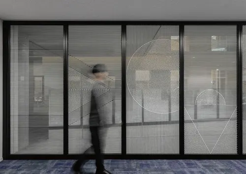 多くの国からの留学生の心を思いやるようなやさしい視点と表現で丁寧にグラフィックが作られている。一見してナイーブでロマンチックな作品。写真を手掛かりにした表現手法自体は特に新しいわけではないが、応募の写真で見る範囲において空間的に特徴があるわけではないので、このサインの空間演出効果の役割は大きい。館内は場所でサインのテーマが水平線(写真表現)と国旗(幾何学表現)という二ラインとなっているが、二つの表現がかけ離れているためメインのテーマに絞り切ってもよかったのではないかと思った。