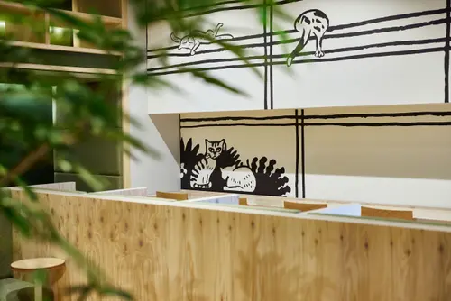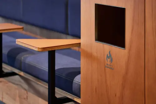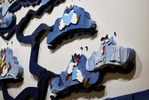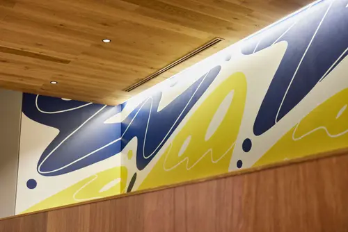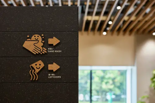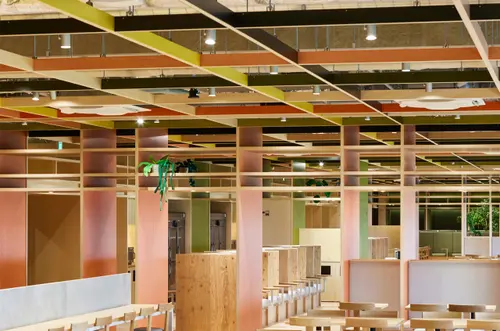 作品意図ファッションEC物流拠点で働く人々の休憩室。スタッフをワクワクさせることをテーマに、2つの休憩室を「デニム」「チェック」とファッションに関連するコンセプトでデザイン。服好きのスタッフが服を選ぶのと同じように休憩場所を選べるようになっている。サインやアートは休憩室のコンセプトに合わせてZOZOUSEDの廃棄商材をアップサイクルして制作し、休憩時間をワクワクさせるポイントとして空間を彩っている。