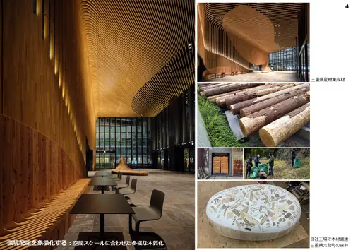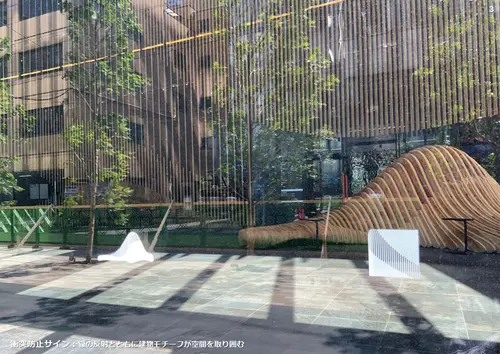作品意図名古屋駅を西側に望む賃貸オフィスビル・店舗・駐車場の複合ビル建替計画。総合設計による建物内外一体での公共空間(敷地内歩道や木製ルーバーに包まれた高さ11.4mの広場状内部空間)を整備。市民に開かれた地域のポケットパークとして憩い・賑わいを創出することを目指した。まちなかでやすらぎをもたらす居場所となるよう木質化した。待合や休憩で積極的に活用されることを期待し、その目印となるモニュメントベンチを設置。
