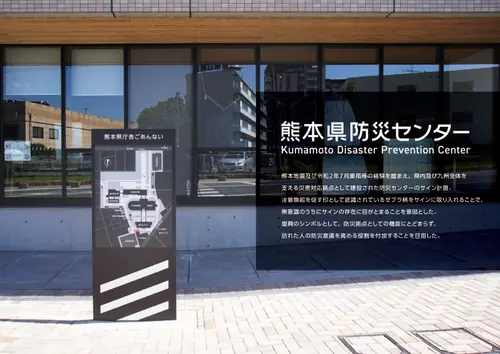 作品意図熊本地震及び令和2年7月豪雨等の経験を踏まえ、県内及び九州全体を支える災害対応拠点として建設された防災センターのサイン計画。