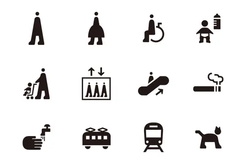ピクトグラムは「いろどりさるく(=いろどりを歩き回る)」という施設のコンセプトから、