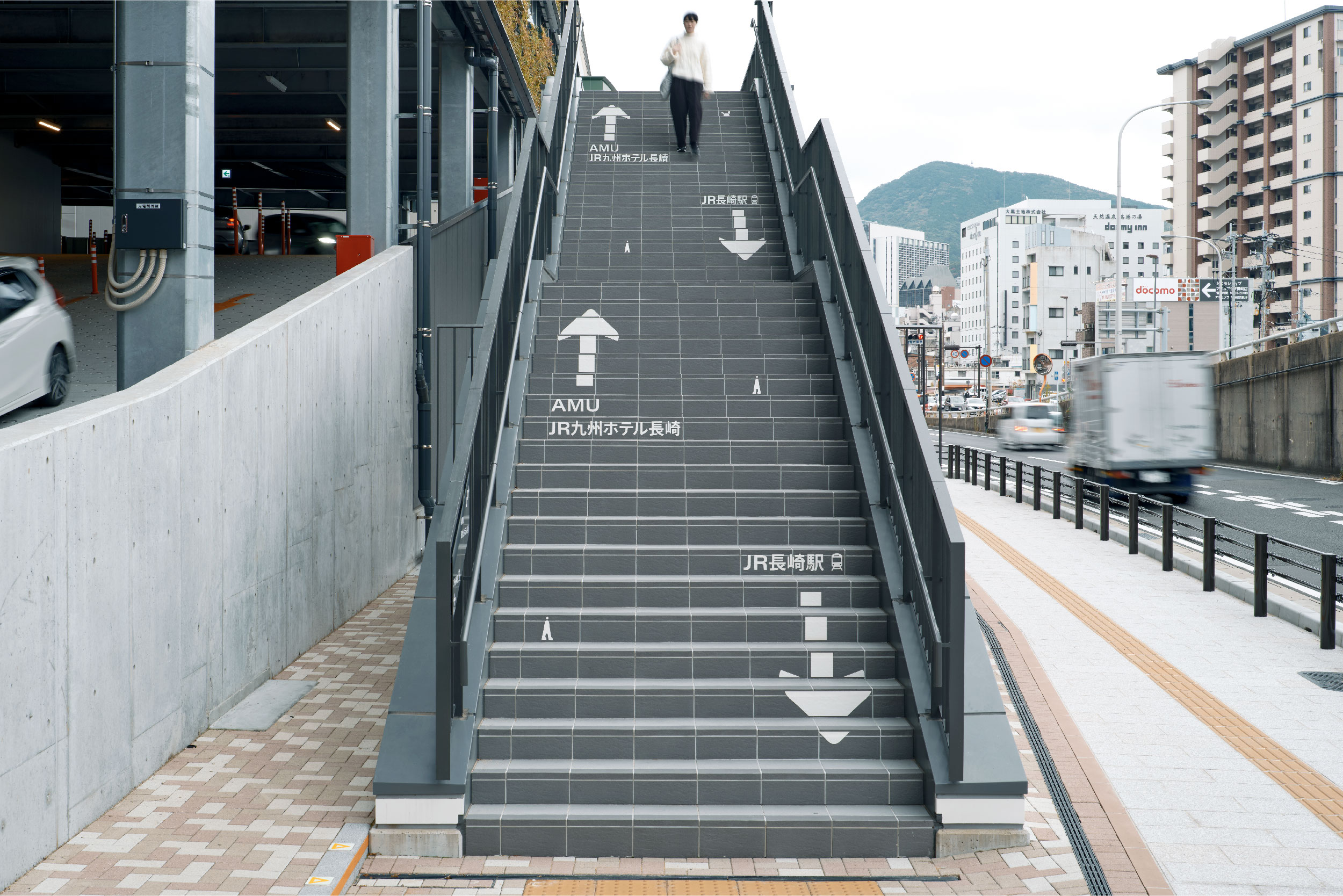 長崎らしさが感じられるよう、サインの素材は長崎県で採掘される砂岩「諫早石」を選び、