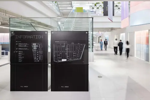 作品意図「鉄」を取り扱い、主に橋梁事業を手掛ける企業の事務所棟のサイン計画。
