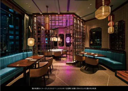 LIANHUAという名は芙蓉が由来で“蓮の花”の別称であり、古来中国では“美しい女性”という意味をもつ。名前から想像した蓮の葉や花をイメージした色調で整えた店内は伝統的技法を守りながらもジャンルに囚われない古典と独奏を組み合わせた手法でCOZY LUXURY“居心地の良い贅沢”を目指した。