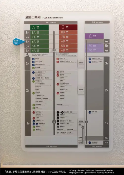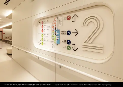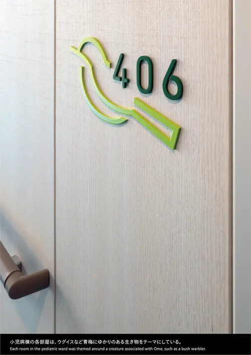作品意図豊かな自然がひろがる東京都青梅市の総合病院建替工事に伴うサイン計画。「青梅らしさ」を表現するために、病院の眼下を流れる多摩川の清流をモチーフとしたラインが特徴の階数をデザイン。青梅のシンボルである梅の花や実の形状を、サインの要素に散りばめた。優しい曲線を取り入れたインテリアに、サインをビルトインさせるなど空間との調和に配慮した。市民に愛される分かりやすく快適で優しい医療空間を実現している。