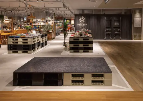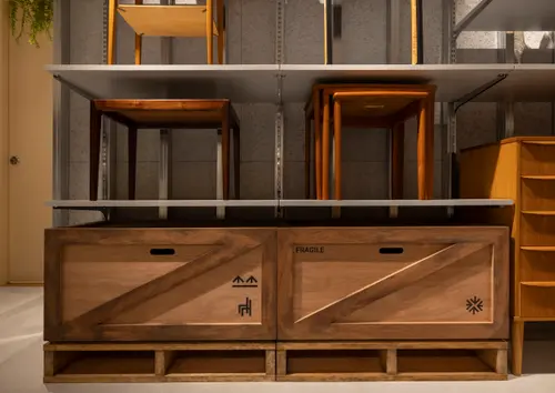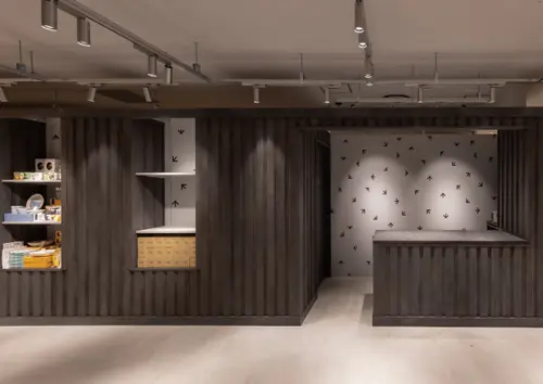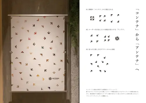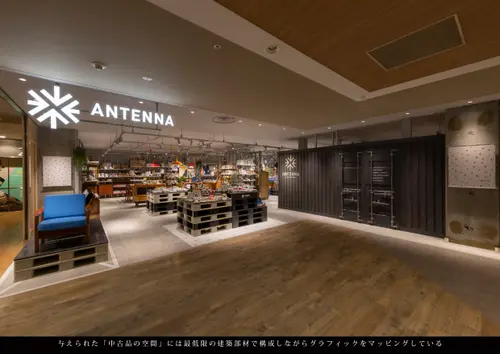 新たなブランドの立ち上げに際してリユース事業を強みとするクライアントの特性を捉えながら、新旧混在する商品からユーザーが蚤の市のように見つけだすこと自体を楽しめるようアイデンティティを構築した。与えられた「中古品の空間」には最低限の部材で構成しながら、そのポテンシャルを活かし、そこにグラフィックをマッピングすることでブランドの持つ軽快さを演出した。