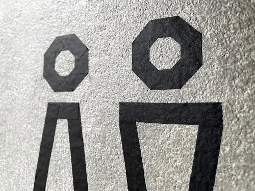 作品意図自社で製造している商品であるマスキングテープを社内のサインの表示に使用した。 テープでの表現・再現に適した文字とアイコンをデザイン。 また、テープの切れ端はテープカッターの跡を生かし、 テープとテープの間にはあえて隙間を設けるなど、 テープであることを視認できるように微調整した。