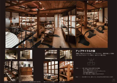 作品意図岐阜高山の江戸時代の趣を残す重厚な街並にある、土川家(角家 宗左衛門)・築165年上三之町町並保存区域に立地。「嵓クラホリック」では大切なものを保管したという「蔵」になぞらえ、現代的にブラッシュされた岐阜特産ゆかりのモノを蔵のなかに大切に扱うように陳列。また内装を県産材を利用し、「蔵」にて使用されていたものを利用しアップサイクル什器を制作。観光地において店舗そのものが発信地となるようにした。