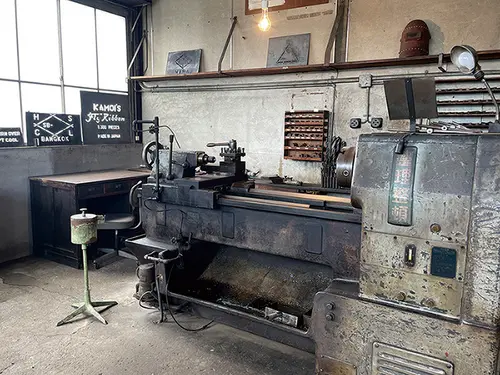 周囲に重厚で味わいのある貴重な道具や機械を配置した。