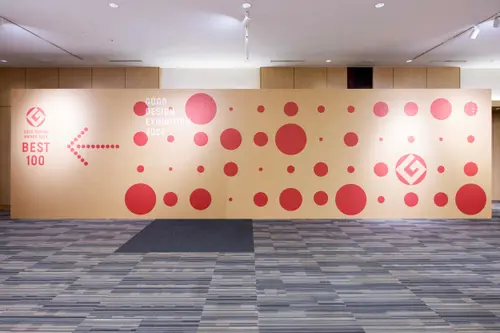 受賞コメントグッドデザイン賞展のビジュアル制作にあたり、新たな要素を加えず、象徴である赤い丸をドットとして昇華させました。大小さまざまなドットをランダムに配置することで、多様な「good design」が集まる様子と、会場の賑やかな雰囲気を表現しています。審査員としても多様性を強く感じていたため、複数のパターンを用意することでその広がりを視覚化しました。また、数日間のイベントであることを踏まえ、什器はレンタルを活用し、ゴミを最小限に抑え、時代性にも配慮しています。グッドデザイン賞の現状を少しでも映し出すことができたなら幸いであり、このたびの受賞を大変嬉しく思います。