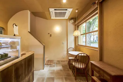 作品意図「お菓子の時間を大切に」というコンセプトのもと、焼菓子の生地のような壁や、こんがり焼けたクッキーを思わせる床など、質感にこだわった空間をデザイン。サインには本物のクッキー型を使った誘導サインや、マドレーヌ型などを活かした照明を制作し、焼菓子屋らしい世界観と機能性を両立させた。