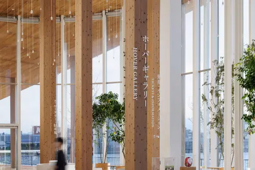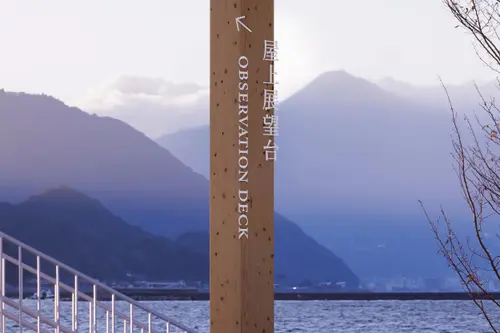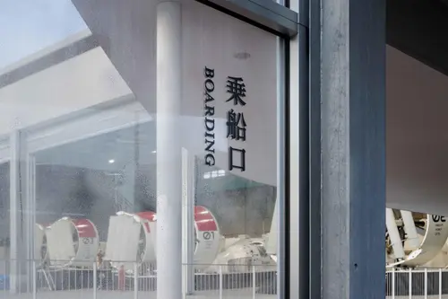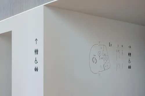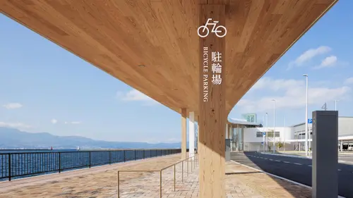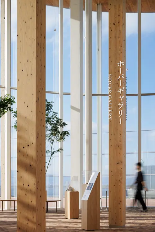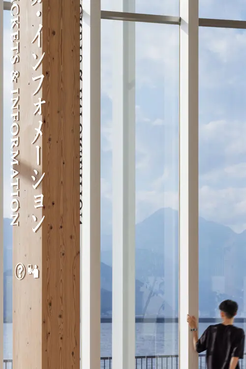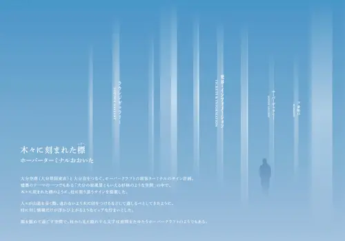 作品意図大分空港(大分県国東市)と大分市をつなぐ、ホーバークラフトの旅客ターミナルのサイン・展示計画およびVI開発。 建築のテーマの一つでもある「大分の原風景ともいえる杉林のような空間」の中で、木々に刻まれた標のように、柱に寄り添うサインを提案した。人々が山道を歩く際、迷わないよう木に印をつけるなどして道しるべとしてきたように、柱に対し情報だけが浮かび上がるようなピュアな佇まいを目指した。