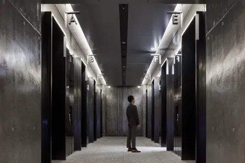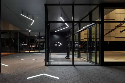 京橋の地で120年以上の歴史が続く戸田建設が、本社建替えを機に「まちに開かれた、芸術・文化拠点の形成」をテーマとして建設した超高層複合用途ビルのサイン計画である。京橋に縁のある日本絵画最大の画派『狩野派』家紋の「矢羽根」をサイン・グラフィックに展開している。外構エントランスの人々を迎えるサインから、館内の誘導にいたるまで「矢羽根」が見事にデザインコントロールされている。また、各所サインのディテールも完成度が高い。東文化の背骨である上野、日本橋、京橋、銀座、新橋と続く銀座通りにあって、戸田建設と京橋の伝統文化を近代の街に美しく紡いでいる。[平野湟太郎]