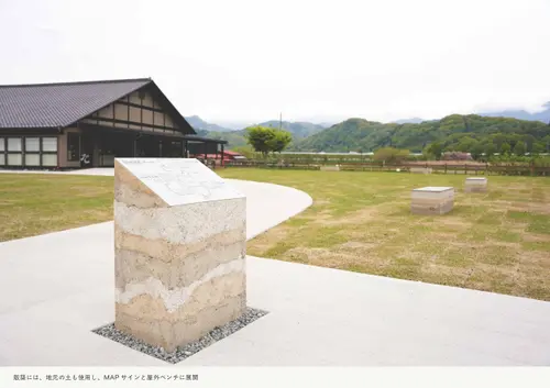 作品意図450年以上の歴史をもつ「西嶋和紙」 の歴史や魅力を体感する、道の駅のサイン計画。書道用に特化した和紙の特徴や、紙を重ねたまま天日乾燥させる独特の製法を表現するロゴを制作し、それをエレメントに、建築・サインデザインを展開した。書道らしさのある特徴的な書体を制作し、施設名や建物名サインをデザインするとともに、版築製や和紙製のサイン・什器とし、和紙の手触り感や素材感を感じられる空間を目指した。