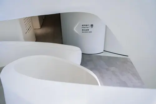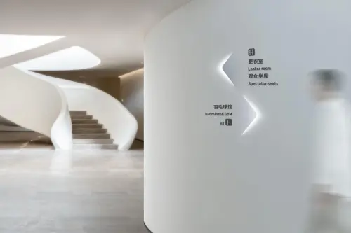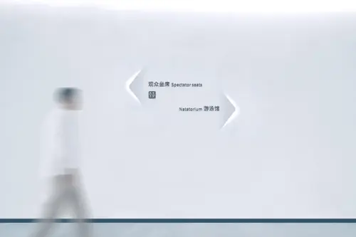 受賞コメントThe Dashahe Sports & Cultural Center adopts a "fold" design concept, using compression and elevation to create a continuous architectural form inside and out. This approach softens the rigidity of the structure, generating flexible spaces and traffic flows that deviate from tradition. Standardized signage systems prove insufficient here due to unique spatial conditions, requiring high adaptability in information combinations. The design draws inspiration from Tanglang Mountain’s undulating layers, mirroring its fluidity in a light, elegant form that harmonizes with the architecture.The arrow symbol, embedded as a cut-and-fold feature in the wall, maintains readability while aligning with the space’s curves, creating a subtle dialogue. This restrained elegance respects spatial language while offering intricate details. Simplicity in visuals conceals advanced craftsmanship and meticulous design-construction coordination. Unlike conventional factory-built installations, the signage system was integrated early, pre-installing power, templates, and mounts to seamlessly blend with walls and finishes, ensuring the design’s intent. With a unified design language, we craft a dynamic spatial symphony. Every visitor experiences the space’s unique aesthetics, enjoying enhanced comfort and convenience.