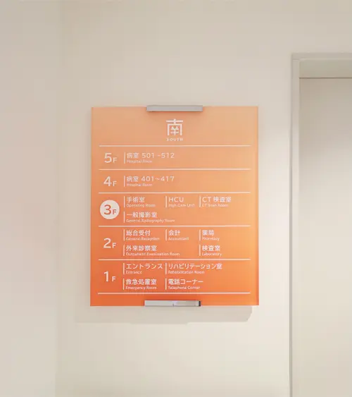 作品意図"大阪府大東市の地域医療を支えてきた、大東中央病院の新棟のサイン計画。