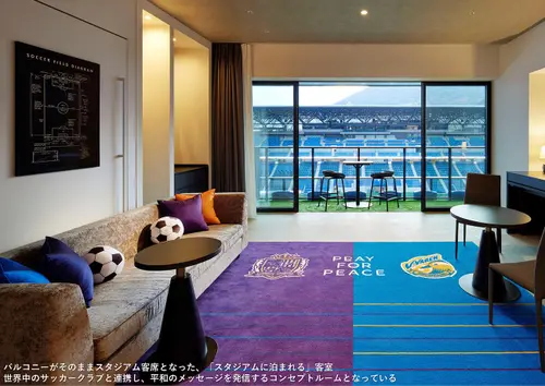 作品意図スタジアムに泊まれる客室、 試合の臨場感を味わいながらスイミングを楽しむことのできるスパエリア、スタジアムを望みながら長崎ならではの食事を味わえるレストランなど、全てがスタジアム体験と一体になった新しい体験型ホテル。