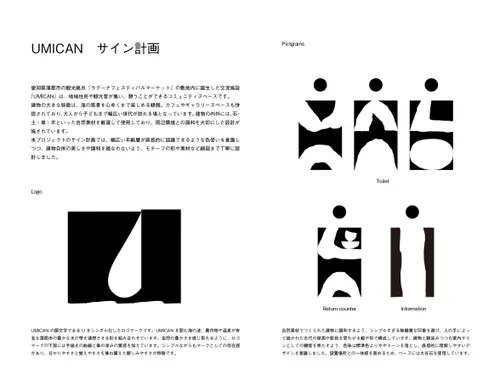 作品意図「UMICAN」は地域住民や観光客が集う海沿いの空間で、縁側やカフェ、ギャラリーも併設されており、幅広い世代が訪れる場です。自然素材をふんだんに使用した建物や周囲環境と調和するよう、手仕事感のある親しみやすいVIを目指しました。ロゴは形をシンプルにし、質感の表現にこだわっています。サインは直感的ながらも落ち着いた色を使い、手描きの線や形で構成することで、親しみやすさとあたたかみを表現しました。