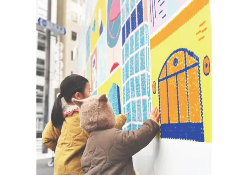 工事現場の白いカベに未来のまちを描こう ーみんなの色がまちの風景をつくるー