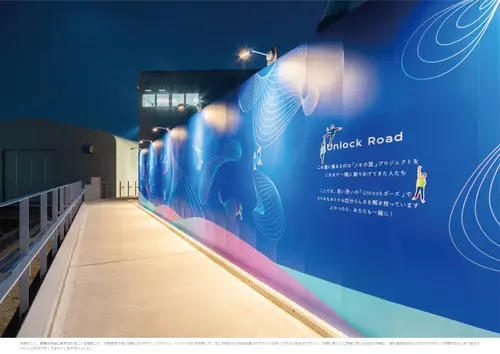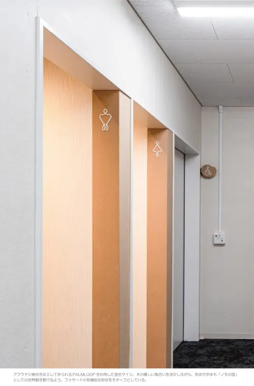 作品意図万博ならではの、来場者が来て、見て、ソウゾウして、動いて楽しめるデザインを目指すとともに、循環型社会に向けて端材活用による「アップサイクルサイン」の実現を試みた。かたちをひねる立体的なロゴデザインや来場者が動くことで発色が変わる館名サインにより、視点を変えると見える世界が変わることを意図した。家電や建材を扱うパナソニックの端材を特性に応じてサインプロダクトへ昇華させ、循環型サインの可能性を拓いた。
