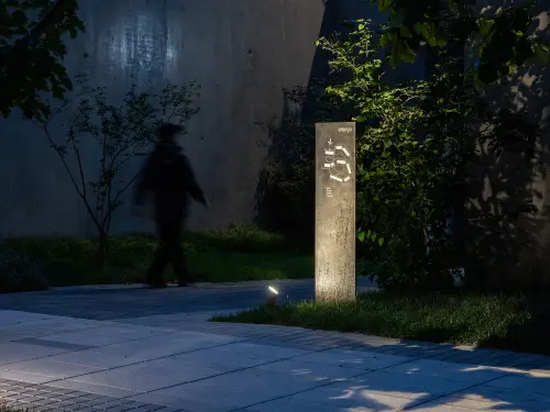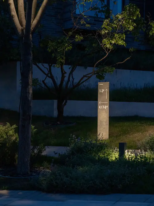 作品意図Rose Garden features modernist architecture. Designer fused an environmental visual system, blending signs, streetlights, and urban furniture with the abstract backdrop. Translucent materials exude minimalism, playing with light and shadow for seasonal ambiance and depth, revealing how the invisible shapes the visible, symbolizing transience and permanence, echoing life's evolution.