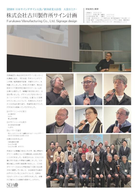 色部義昭氏(株式会社日本デザインセンター)を講師に迎え、「第58回 日本サインデザイン大賞/経済産業大臣賞 大賞セミナー」を開催いたしました。昨年に引き続き、株式会社モリサワ東京本社9階のセミナールームを会場にお借りして、60名の参加者と共に、お話を伺いました。デザインのプロセスを4つの「サインデザインの作法」に基づいて思考されていることについて、色部氏のこれまでの SDA作品を振り返り、具体例をあげていただきながら紐解いていただきました。